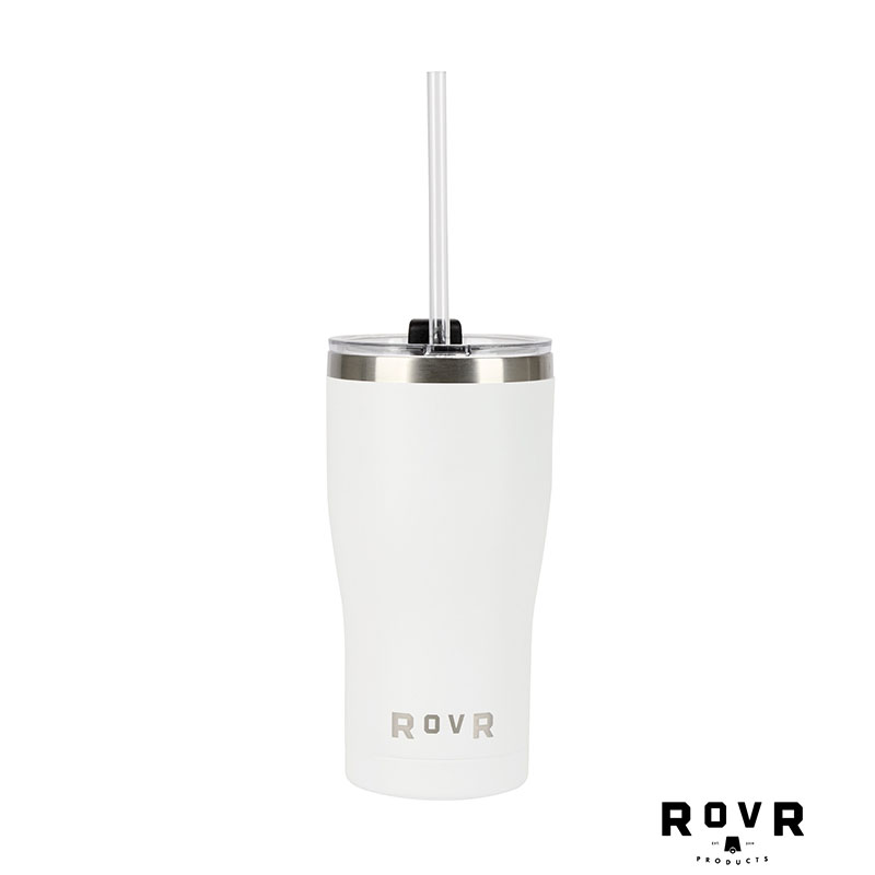 Perfect for your favorite beverage, the RovR 20 oz. Stainless Steel Tumbler combines style and functionality to enhance your drinking experience. Featuring 18/8 double-wall steel construction, vacuum insulation, and a ceramic lining to keep your drinks flavorful for longer, it maintains hot drinks for up to 8 hours and cold drinks for up to 24 hours. The lid offers multi functionality for sipping, swigging, or slurping, and includes a removable, reusable straw that fits snugly into the silicone opening, designed to resist splashes. Its slim design fits most cup holders and the durable, sweat-proof powder coat that guards against bumps and scrapes, this FDA-compliant and BPA-free tumbler is perfect for any adventure. Complies with Prop 65. 3 1/2″ W x 7″ H x 3 3/4″ D